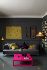 So this morning, I stumbled on Moe’s Pop of Pink blog and went absolutely bananas over this pink & grey living room by Abigail Ahern. The table! The walls! The couch! I’m totally drooling. So of course, I’ve been ogling pink & grey all morning!