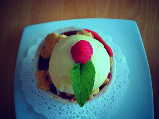While we sipped our coffee, we thought we’d go ahead and share the berry cobbler. What’s a date without something a little sweet?