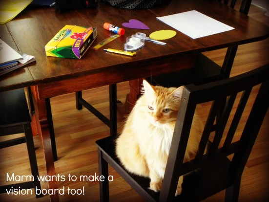 When I got home, I moved some stuff on my wall around and put my vision board right above my writing space. In fact, I’m looking at it while I type this!