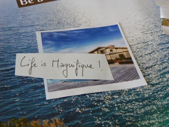 This is the super fun part – gather all your clippings and see what’s calling you. For me, it was long vacations with tropical beaches, a new home and family/self time. Even the colors went well together.