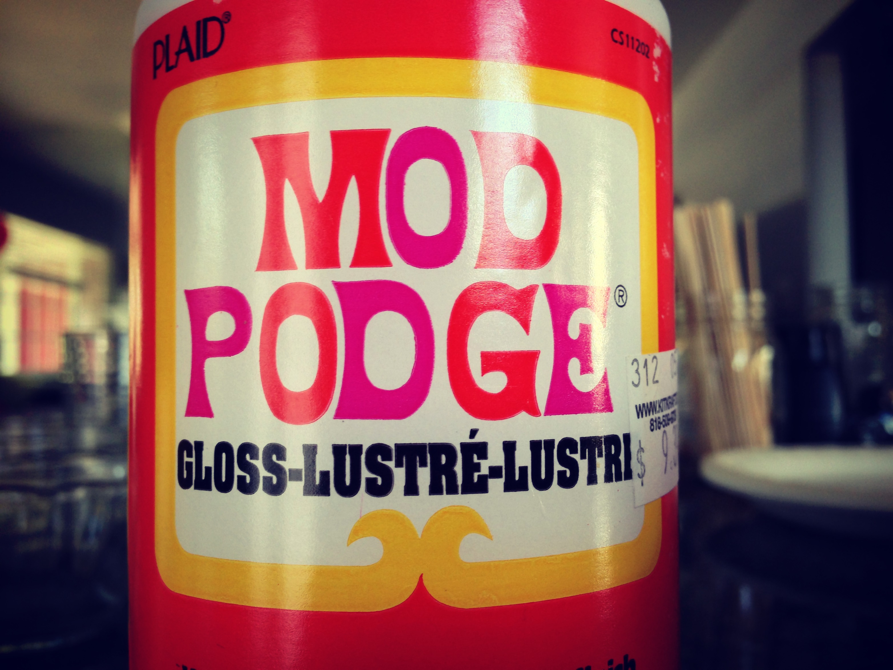 Mod Podge is a sort of tacky glue; other types of glue may work just fine, but all of the tutorials we looked at recommended the Mod, so that’s what we used.