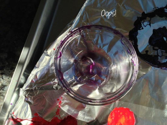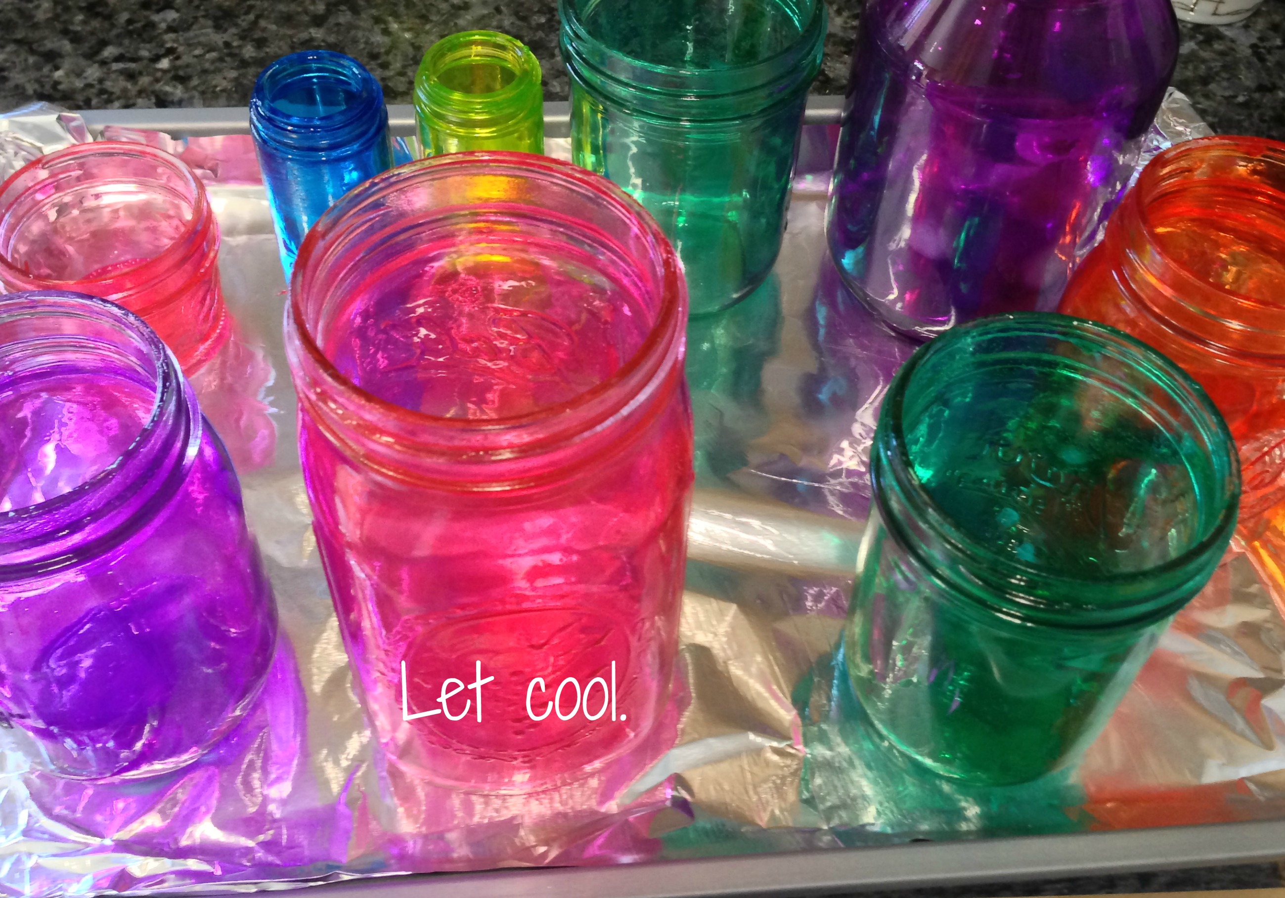 24. Gah! I was trying to get the vintage blue tint look on some old crown glass mason jars I found and I definitely used too much food colouring versus water as they came out way too blue for the vintage look after baking.