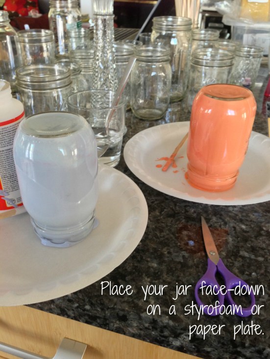 Note: If you want to use your jars as flower vases or drinking cups, you’ll need to add a clear sealer to them. Otherwise, water will affect the glue. These are not safe to drink out of unless you add a sealer, so keep that in mind. Mod Podge is non-toxic, but I don’t think any of us want our drinks flavored with glue!