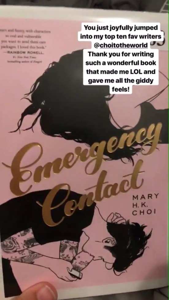 Emergency Contact by Mary H.K. Choi. You know that beginning part of falling in love where just their name lighting up your phone makes you smile like an idiot and want to roll into a happy ball all over your bed? This whole BOOK makes you feel like that.
