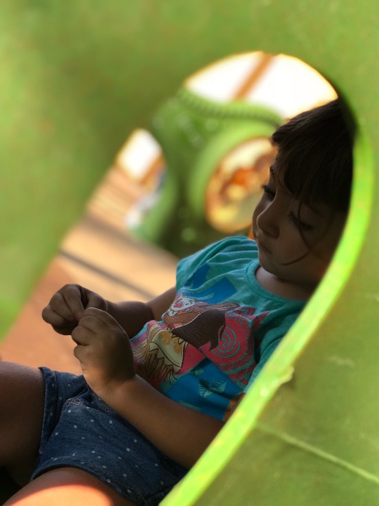 Together, they watch a younger boy play. Facial resemblance tells me he is the younger brother. The girl and her mom smile at him, and interact sometimes. When he is off doing his own thing, they talk gently to each other. But mostly, they just sit in silence as companions.