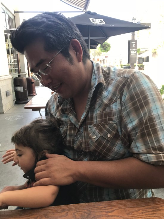 V is very standoffish with people she has just met, but within five minutes she asked to hold his hand, then asked him to pick her up, and that’s pretty much how the rest of the afternoon went.