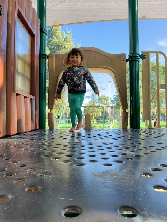 While in the stall, V counted squares of tile on the floor, all while I murmured, That’s great, and, Okay, yes, but please don’t touch the floor.