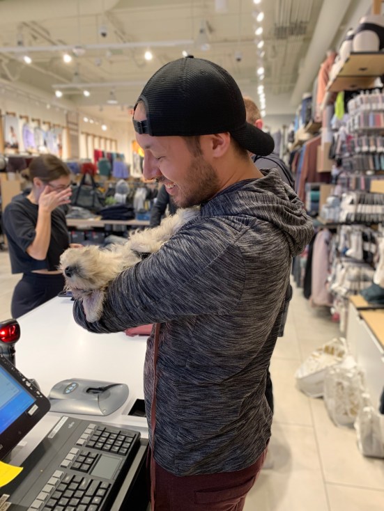 This morning, I was with my team, on the happiest day of our year: the one day per year we can purchase gifts for others with our discount. Coffee was flowing, people were tallying up their totals and checking their lists. The holiday spirit was so strong and sweet. A co-worker even brought her brand new puppy and we all took turns holding her and cooing.