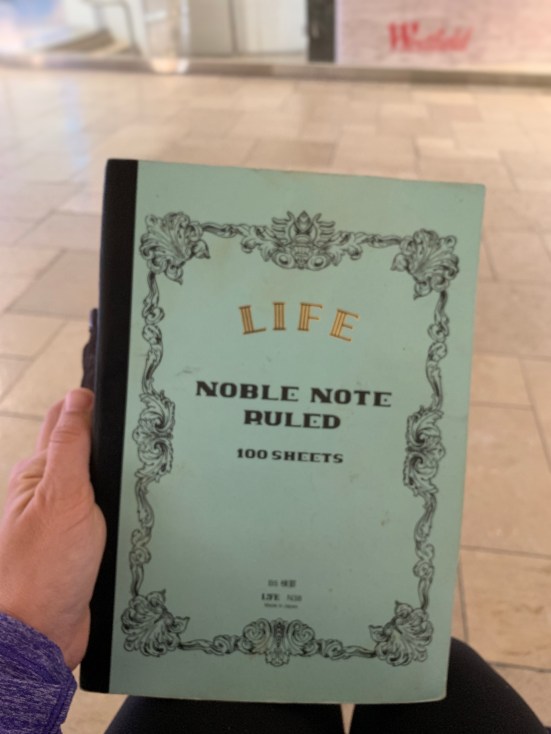 I held the familiar “Life” notebook in my hands at 7:15 this morning, sitting on a bench in the mall before work began. I read for a while, then read a bit on my break too.